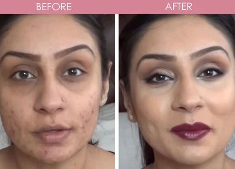 Toque para formar uma cobertura pura, média ou mesmo total para ocultar falhas, incluindo rugas, manchas, acne, poros grandes, cicatrizes de acne e qualquer ponto negro.