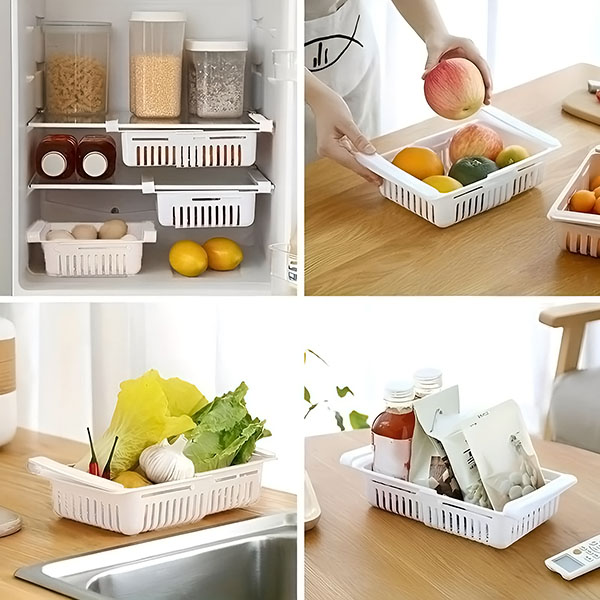🍎 Organize frutas, lanches 🍪 e bebidas – use cada centímetro das cestas.