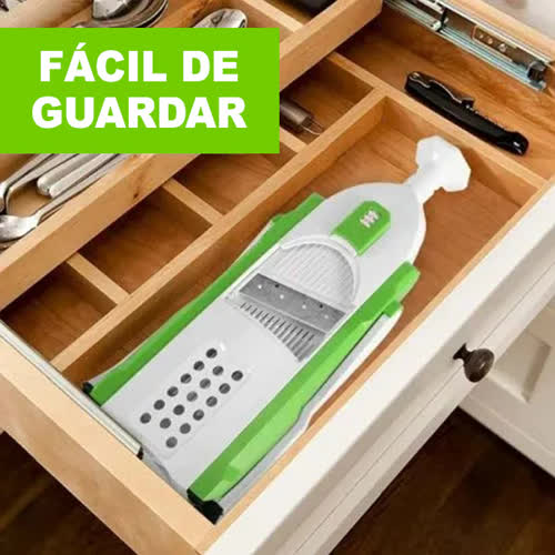 O design dobrável economiza espaço, tornando-o perfeito para qualquer tamanho de cozinha. Permite-lhe também preparar de forma rápida e segura frutas e legumes de várias formas!