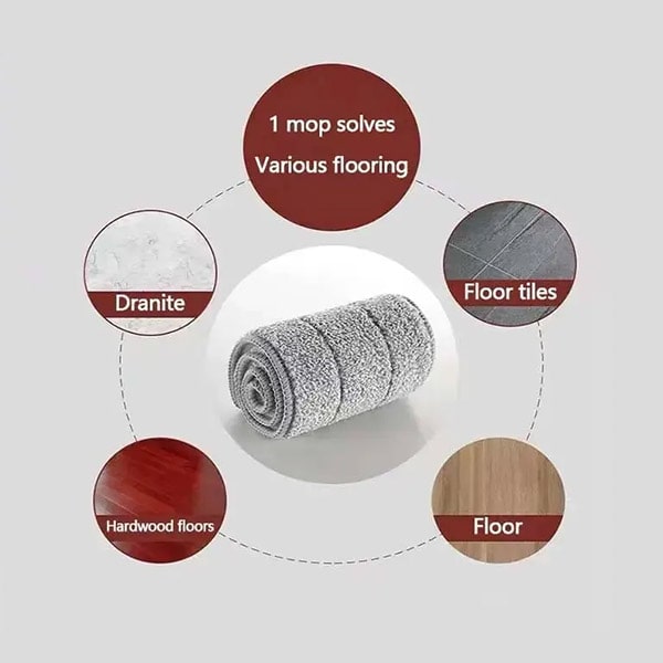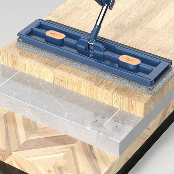 A nossa esfregona plana de enrolamento automático limpa e seca rapidamente o chão, deixando-o impecavelmente limpo e pronto a brilhar.