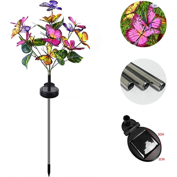 Decore o seu jardim para as belas noites de verão! Desfrute das suas refeições ao ar livre e dos seus jantares, contemplando as encantadoras borboletas luminosas que ganham vida graças à energia solar. Vai sentir-se revigorado e encantado.