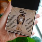 Cartão exclusivo com mensagem: Para a Minha Filha – Nunca te esqueças que te amo. Espero que acredites em ti própria tanto quanto eu acredito em ti. Quando a vida tentar derrubar-te, terás sempre o apoio deste velho leão. Não posso prometer que estarei aqui para o resto da tua vida, mas posso prometer que te amarei para o resto da minha. Tenho orgulho em ser teu pai. Com amor, Pai