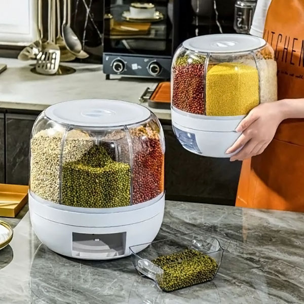 🔄 Rotação de 360° para fácil acesso – Chega de procurar arroz ou feijão em recipientes profundos!