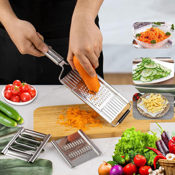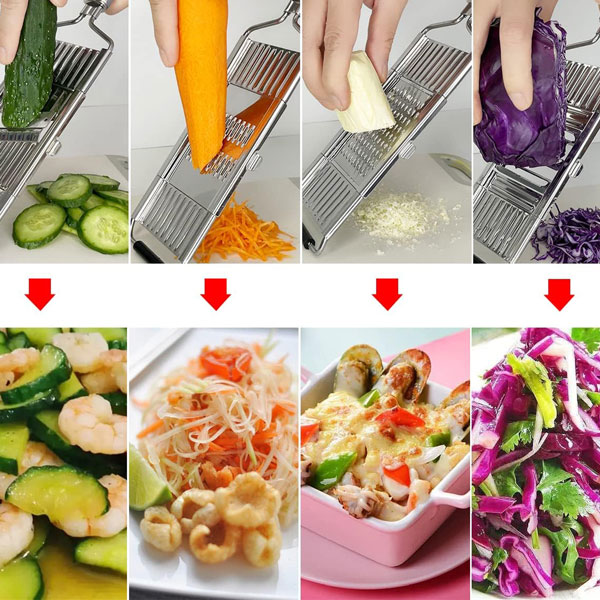 🧑‍🍳 Design multifuncional: Fatie, rale e pique com uma única ferramenta—perfeito para saladas, batatas fritas e refeições rápidas.