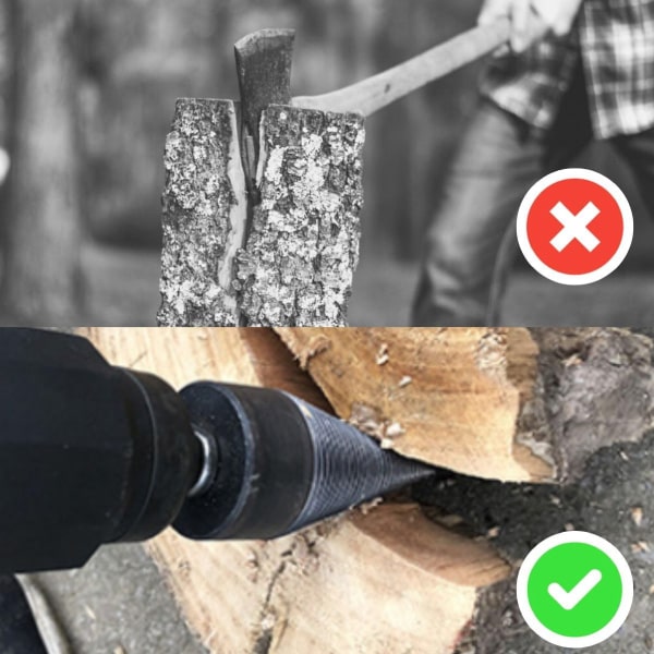 A chave de parafusos de haste hexagonal tem uma forma cónica eficiente, que serve como um parafuso autorroscante que fura facilmente a madeira. A forma cónica permite uma divisão mais produtiva da lenha e pode ser utilizada em todos os tipos de madeira, tais como nogueira, carvalho, ácer e outros.