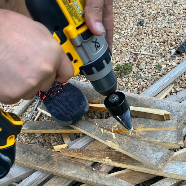 Insira a broca de madeira no berbequim elétrico e pode começar a rachar a madeira. O pacote inclui parafusos com diferentes grampos que caberão no seu berbequim.